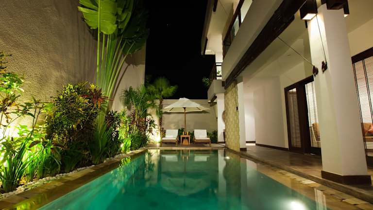 Das Hotel Danoya Private Luxury Residences in Seminyak bietet Urlaubern eine moderne und luxuriöse Unterkunft mit mediterranem und balinesischem Stil. Die Villen mit privatem Pool und Garten bieten viel Platz und Komfort. Ein kostenloser Shuttleservice nach Seminyak ist ein weiteres Highlight. Entspannen Sie im Spa oder erkunden Sie die Umgebung mit dem Fahrradverleih.
