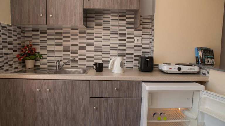 Die Zimmer in den Daphne Studios sind mit einem Kleiderschrank, einem Wasserkocher, einem Kühlschrank, einem Toaster, einem Safe, einem Flachbild-TV, einem Balkon und einem eigenen Badezimmer mit einer Dusche ausgestattet. Einige Zimmer verfügen über eine Küche, die mit einem Ofen, einer Mikrowelle und einer Herdplatte ausgestattet ist. Bettwäsche und Handtücher sind in jedem Zimmer vorhanden.