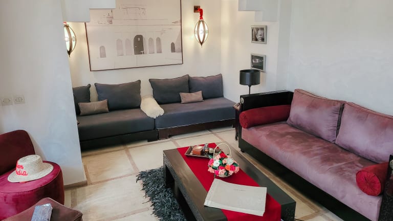 Die 5 individuell gestalteten Zimmer im Dar Chadia Riad bieten den Gästen Komfort und Entspannung. Jedes Zimmer verfügt über eine MP3-Dockingstation, einen DVD-Player und ein Select-Comfort-Bett mit Daunenbettdecken und italienischen Bettbezügen von Frette. Ein 55-Zoll-Smart-TV mit Satellitenempfang und kostenfreies WLAN sorgen für Unterhaltung und Konnektivität. Die Badezimmer sind mit Duschen, kostenlosen Pflegeprodukten und einem Haartrockner ausgestattet.