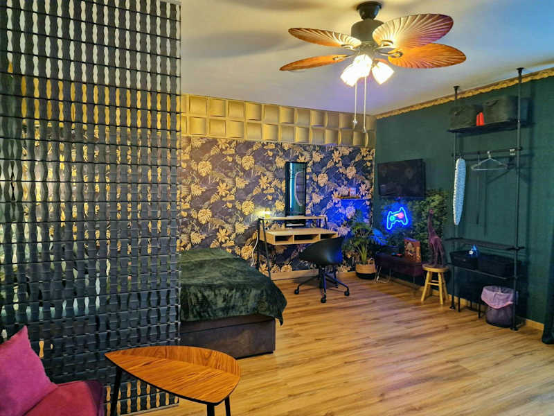 Dark Jungle - Innenstadt für 4 Netflix Switch Waschtrockner bietet moderne Übernachtungsmöglichkeiten in Form einer Ferienwohnung, die für bis zu vier Personen geeignet ist. Die Ausstattung umfasst kostenloses WLAN und einen Flachbild-TV. Die Unterkunft ist besonders für Familien oder kleine Gruppen geeignet.