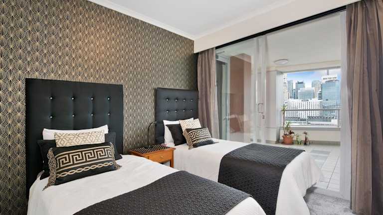 Erleben Sie einen unvergesslichen Aufenthalt im Darling Harbour Getaway in Sydney. Genießen Sie den atemberaubenden Blick auf die Cockle Bay und profitieren Sie von der zentralen Lage des Hotels, nur wenige Gehminuten von den besten Bars und Restaurants der Stadt entfernt. Entspannen Sie im Innenpool, trainieren Sie im Fitnesscenter und parken Sie Ihr Fahrzeug sicher und kostenlos. Die stilvollen Apartments bieten Ihnen allen Komfort, den Sie benötigen, einschließlich einer voll ausgestatteten Küche und zwei Badezimmern.