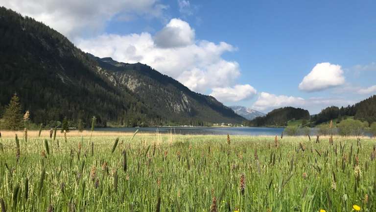 Das Haldensee befindet sich etwa 20 km von Bahnhof Reutte in Tirol und bietet eine malerische Umgebung mit Möglichkeiten zum Wandern, Skifahren und Fahrradfahren.