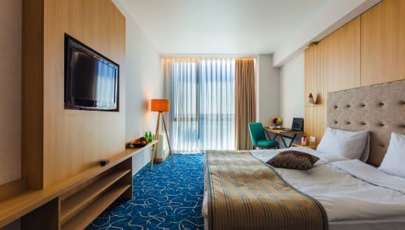 Das Hotel liegt direkt am Strand in Burgas, 1,5 km vom Nordstrand Burgas und 11 km von den Burgas Saltworks entfernt. In der Nähe befinden sich die Burgas Central Railway Station, die Yug (South) Bus Station und das Burgas Opera House. Der Flughafen Burgas ist 15 km entfernt.