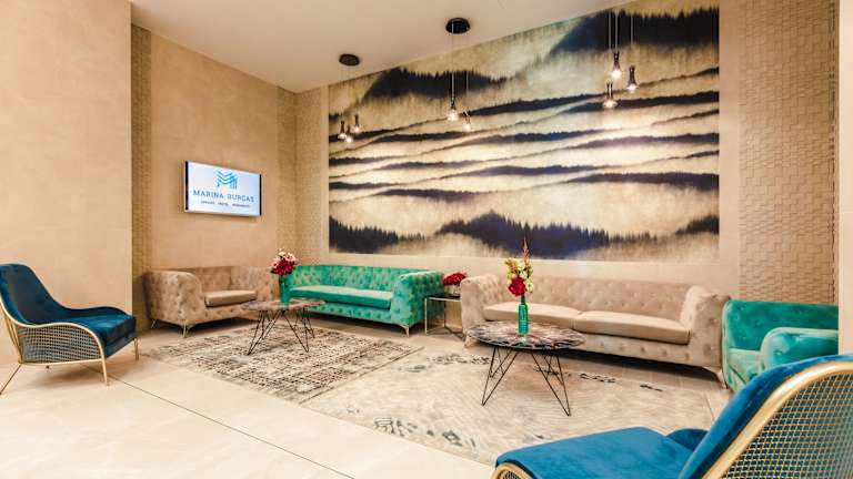 Das Marina Burgas Hotel bietet eine Reihe von Annehmlichkeiten, darunter ein freundliches Personal an der Rezeption, das bei Fragen behilflich ist, sowie eine Gepäckaufbewahrung und einen Safe. WLAN steht den Gästen kostenfrei zur Verfügung. Das Hotel verfügt über rollstuhlgerechte Einrichtungen und bietet auch einen Aufzug. Ein Garten lädt zur Entspannung ein, während ein TV-Raum für Unterhaltung sorgt. Gäste können ihr Fahrzeug in einer Garage oder auf einem Parkplatz abstellen (gegen Gebühr). Zu den weiteren Einrichtungen zählen ein 24h-Sicherheitsdienst, ein Business-Center und ein Transferservice.