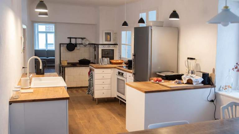 Die Unterkunft umfasst drei Schlafzimmer, ein Wohnzimmer und eine voll ausgestattete Küche. Die Küche ist mit einem Kühlschrank und einer Kaffeemaschine ausgestattet. Außerdem gibt es ein Badezimmer mit Dusche und Badewanne. Handtücher und Bettwäsche sind verfügbar.