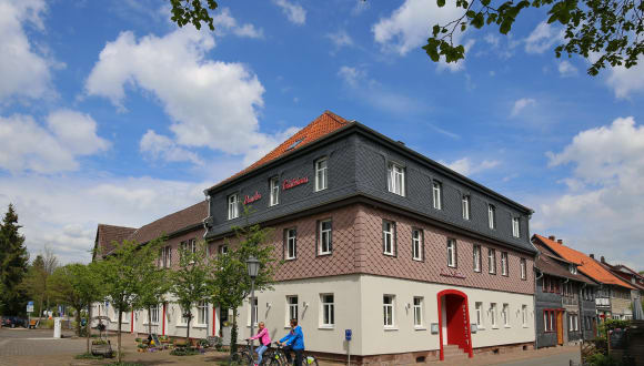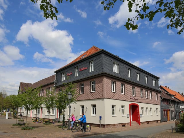 Wir begrüßen Sie herzlich in unserem familiär geführten und zentral gelegenen Gästehaus im verkehrsberuhigten Stadtzentrum von Dassel am Solling. Das Traditionshaus wurde mit historischen Materialien aufwendig saniert. Im Gästehaus übernachten Sie in hellen, freundlichen Zimmern mit modernem Bad, WC, DU, Fön und großem Flat-Kabel-TV. Zudem steht Ihnen ein separater Gruppenraum und eine Teeküche zur Verfügung. Individuelle Wünsche und Preise für Langzeitaufenthalte in Zimmern oder Appartements teils mit eigener Küchenzeile sowie Pauschalpreise für Kurzaufenthalte von Gruppen, aber auch Firmentarife sind für uns kein Problem. Als Partnerbetrieb von Bett & Bike, Movelo Miet-E-Bikes und zertifizierter wanderfreundlicher Gastbetrieb freuen wir uns ganz besonders auf Biker und Wanderer und bieten neben Parkplätzen auch abschließbare Räume auf unserem Gelände. Genießen Sie unser Brunch-Angebot nach Ihrer Familienfeier bei uns im Gästehaus. Kartenmaterial für MTB und E-.Bike-Touren sind ebenso wie Wanderkarten mit regionalen Tipps vorhanden. Nach Anmeldung sind auch geführte Touren in der nahen Solling-Vogler-Region möglich. Gern nutzen Sie unser online-Buchungssystem und informieren sich direkt über freie Kapazitäten.