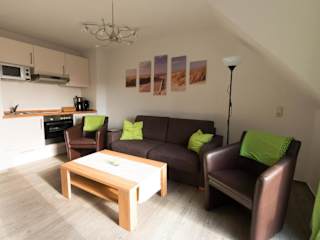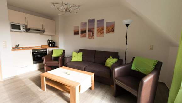 Die Ferienwohnung umfasst 1 Schlafzimmer und ein Wohnzimmer. Die voll ausgestattete Küche ist mit Kühlschrank und Kaffeemaschine ausgestattet. Ein Badezimmer mit Dusche und Haartrockner ist ebenfalls vorhanden. Zudem stehen ein TV und ein Blu-ray-Player zur Verfügung.