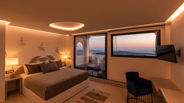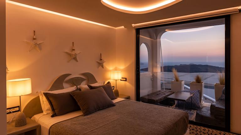 Das Hotel befindet sich in Fira und bietet eine ruhige Umgebung, ideal für Erwachsene, die einen erholsamen Aufenthalt suchen. Es liegt in der Nähe der malerischen Gegend von Imerovigli, die einen schönen Blick auf den Sonnenuntergang ermöglicht. Die Entfernung zum Hafen von Santorin beträgt 3,5 km, während der Rote Strand 8 km entfernt ist. Der Flughafen Santorin ist 6,8 km vom Hotel entfernt.