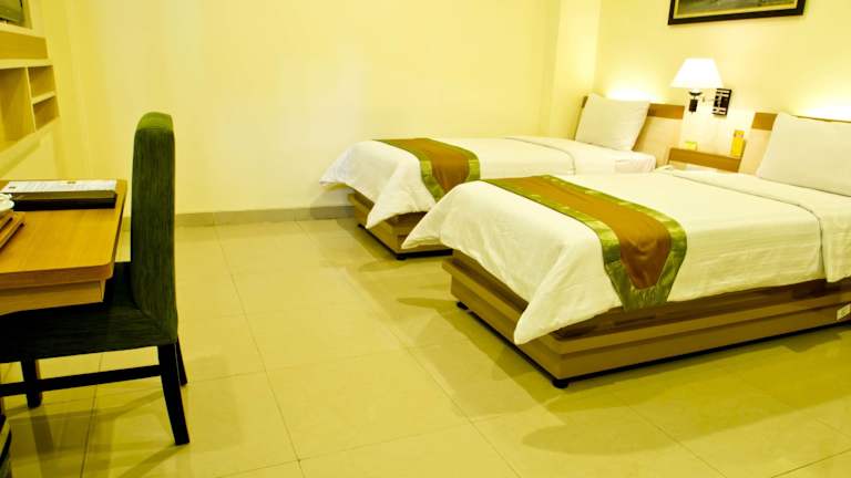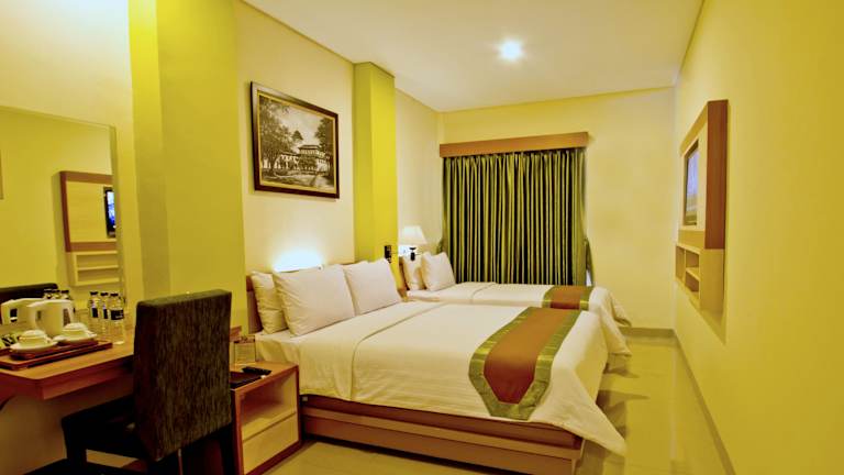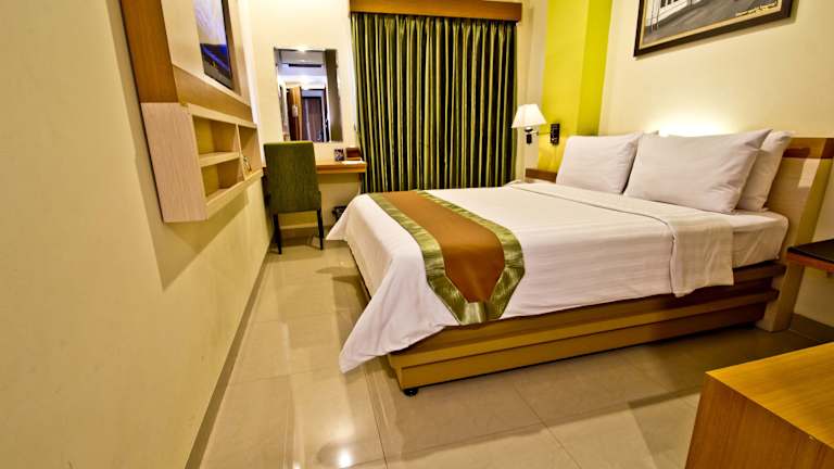 Die Zimmer im De Batara Hotel sind in angenehmen, grünen Tönen dekoriert und bieten modernen Komfort. Jedes Zimmer verfügt über eine Klimaanlage, einen Safe, einen Flachbild-Kabel-TV, einen Wasserkocher und kostenfreien Internetzugang. Ausgewählte Unterkünfte bieten auch ein Sofa für zusätzlichen Komfort. Alle Zimmer verfügen über ein eigenes Bad mit kostenfreien Pflegeprodukten. An der 24-Stunden-Rezeption finden Sie Zeitungen und eine Gepäckaufbewahrung. Auf Wunsch können Sie den Parkservice nutzen und das freundliche Personal steht Ihnen gerne bei der Organisation von Wäscheservice und Autovermietung zur Verfügung.
