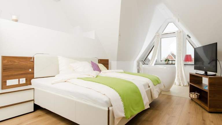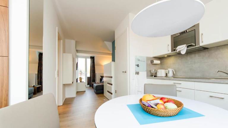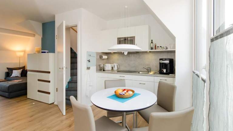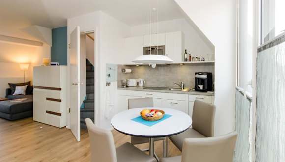 Die de Luxe Maisonette Dünenlicht befindet sich 300 Meter vom Nordstrand auf Norderney entfernt und bietet eine ruhige Lage für Erholungssuchende.