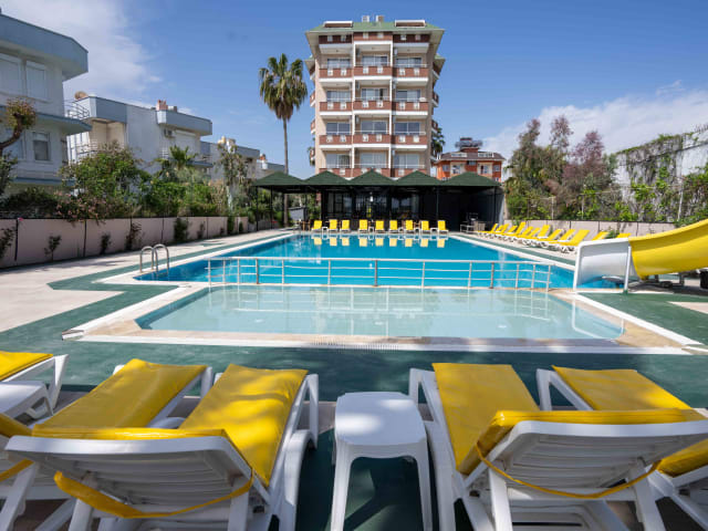 Das De Mare Family Hotel in Alanya bietet seinen Gästen einen komfortablen Aufenthalt in einer entspannten Atmosphäre. Mit einem Außenpool und einem Privatstrand können Sie die Sonne und das Meer genießen. Das Hotel verfügt über ein Restaurant, in dem Sie köstliche Speisen genießen können, sowie über 3 Bars/Lounges für erholsame Abende. Das Hotel bietet zudem einen 24-Stunden-Rezeptionsservice und kostenlose Parkplätze.