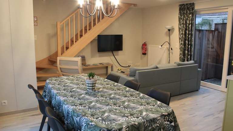 Die Unterkunft De Panne - Adinkerke - 't Voetbrugsje comfortabele nieuwbouw bietet Übernachtungsmöglichkeiten in einem modernen Ferienhaus mit einer Veranda/Patiou und kostenlosem WLAN. Es stehen ein Garten und ein kostenloser Privatparkplatz zur Verfügung.