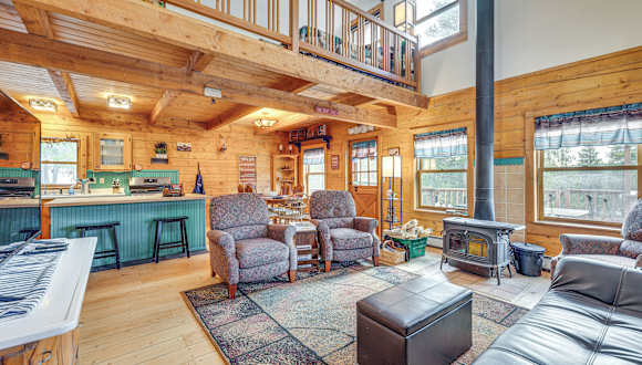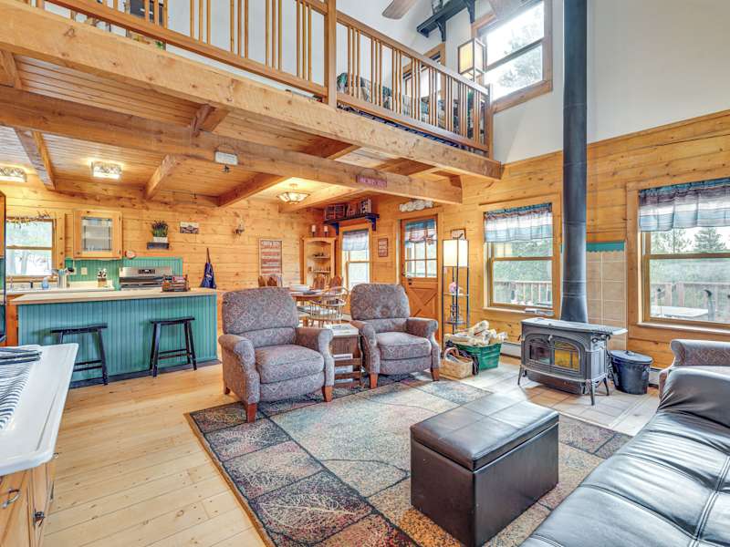 Deck, Fire Pit and Grill Log Cabin in Black Hawk bietet eine Unterkunft mit einem Whirlpool. Die Verbindung zur Unterkunft erfolgt über kostenloses WLAN, und es stehen Privatparkplätze zur Verfügung. Das Ferienhaus umfasst zwei Schlafzimmer, ein Wohnzimmer und eine voll ausgestattete Küche sowie zwei Badezimmer.