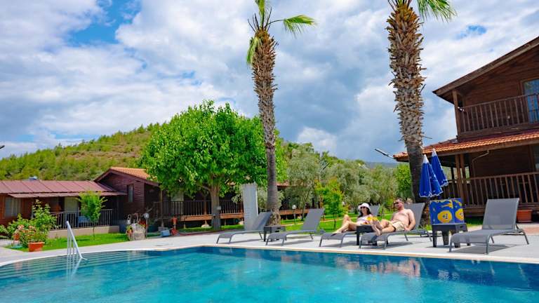 Die Unterkunft liegt in Fethiye, nur 900 Meter vom Strand Calis entfernt. In der Umgebung gibt es Möglichkeiten zum Fahrradfahren sowie Attraktionen wie den Yachthafen Ece Saray, der 11 km entfernt ist. Der Flughafen Dalaman ist 43 km entfernt, und ein kostenpflichtiger Flughafentransfer wird angeboten.