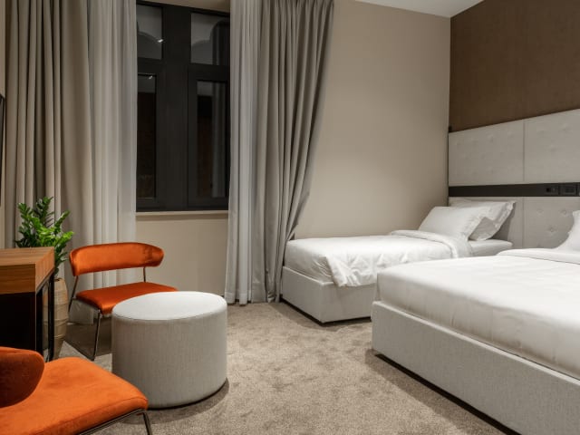 Die Zimmer sind mit Klimaanlage, einem Sitzbereich, einem Flachbild-TV mit Kabelkanälen, einem Safe sowie einem eigenen Badezimmer mit Dusche, kostenlosen Pflegeprodukten und einem Haartrockner ausgestattet. Bettwäsche und Handtücher sind ebenfalls vorhanden.