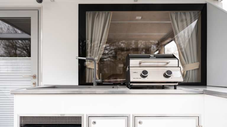 Die voll ausgestattete Küche im Hausboot ermöglicht die Zubereitung eigener Mahlzeiten. Ein Grill steht ebenfalls zur Verfügung.