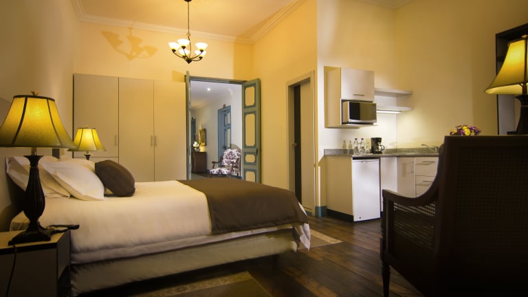 Die eleganten und komfortablen Zimmer im Del Parque Hotel & Suites befinden sich in der 3. Etage und sind im klassischen Kolonialstil eingerichtet. Jedes Zimmer verfügt über Sat-TV, ein privates Badezimmer mit kostenlosen Pflegeprodukten und einem Haartrockner sowie einen Schreibtisch. Alle Zimmer bieten einen atemberaubenden Blick auf den Calderón Park und die Kathedrale.