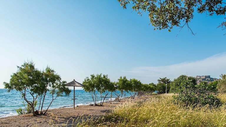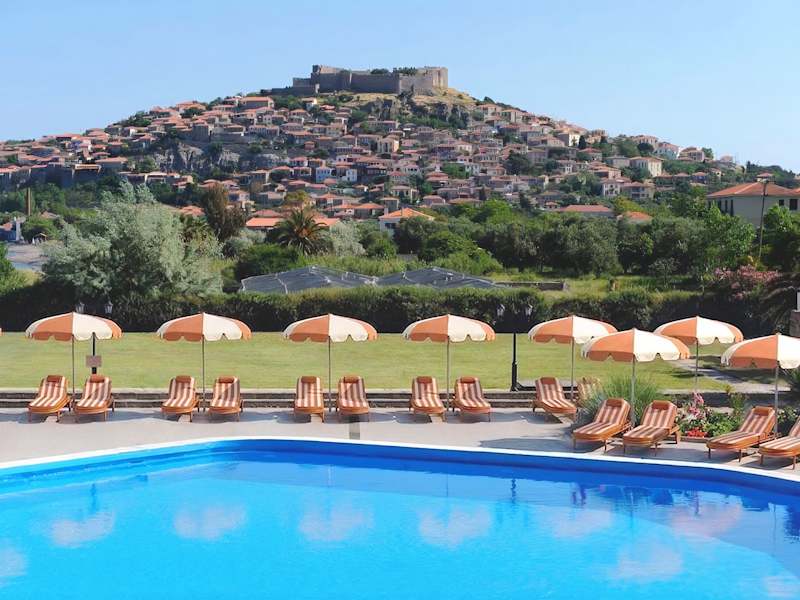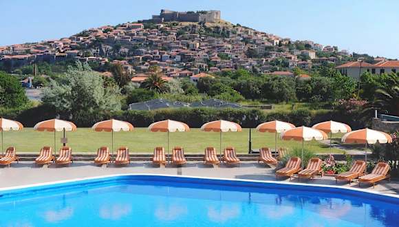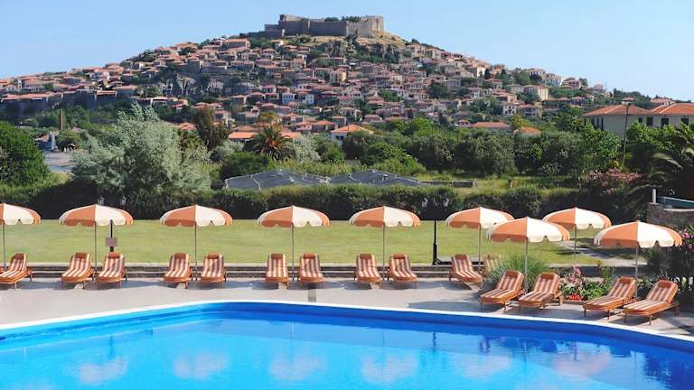 Das Delfinia Hotel & Bungalows befindet sich in Molivos, auf einer Anhöhe inmitten eines grünen Naturparks, umgeben von üppigen Gärten. Der Kieselstrand ist in etwa 120 m erreichbar, während das Stadtzentrum von Mithymna ca. 900 m entfernt liegt. Sehenswürdigkeiten wie das Schloss von Mithymna sind in wenigen Gehminuten erreichbar, und die Thermalquellen von Eftalou befinden sich rund 3 km entfernt.