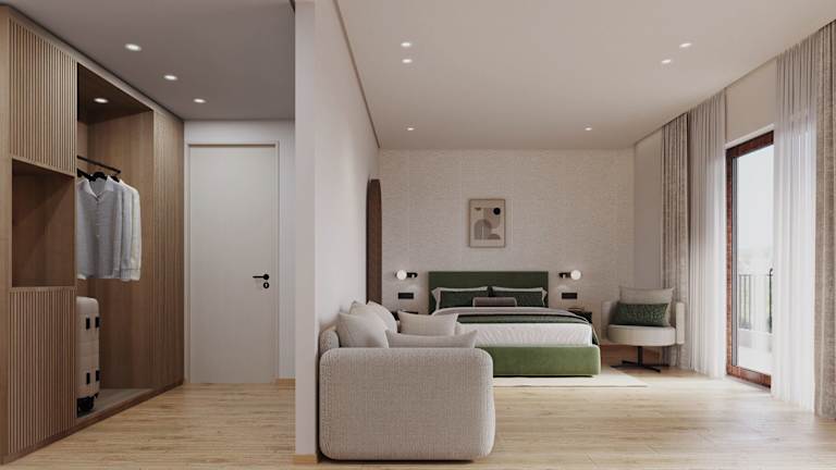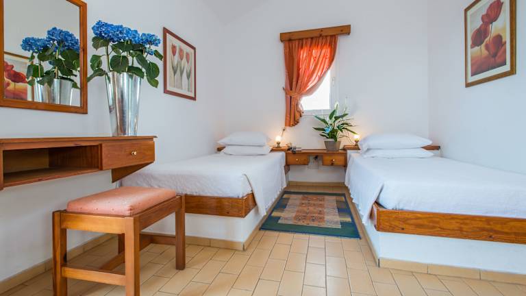Die klimatisierten Zimmer des Hotels bieten ein angenehmes Raumklima mit individuell steuerbarer Heizung und Klimaanlage. Die meisten Unterkünfte verfügen über einen Balkon oder eine Terrasse mit Blick auf das Meer oder den Garten. Die Zimmer sind mit einem Doppelbett, einem Sofabett und auf Anfrage mit Zustellbetten ausgestattet. Zur weiteren Ausstattung gehören ein Fernseher, ein Schreibtisch, eine Minibar, ein Kühlschrank und eine Tee-/Kaffeemaschine. Im Badezimmer befinden sich eine Dusche oder Badewanne, ein Haartrockner sowie Kosmetikartikel. Familien- und Nichtraucherzimmer sind verfügbar.