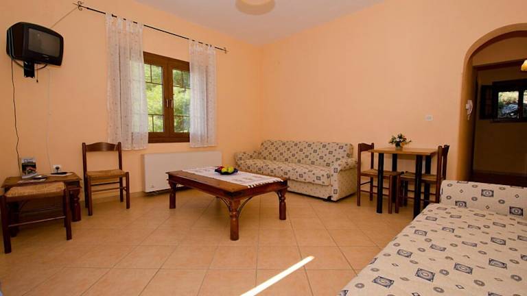 Die 48 Zimmer im Delphi Hotel sind für Familien geeignet und bieten eine gemütliche Atmosphäre. Jedes Zimmer verfügt über eine Kochnische, ein eigenes Bad und einen eigenen Balkon oder Patio. Zur Ausstattung gehören auch Smart-TVs und tägliche Reinigung.