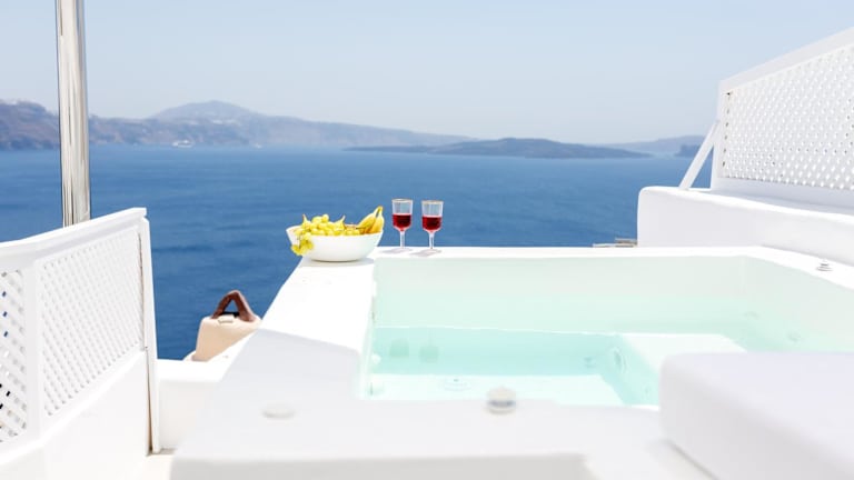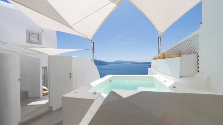 Die Delta Suites bieten Unterkünfte mit kostenfreiem WLAN und Zugang zu einem Whirlpool. Jede Unterkunft ist mit einem Wohnzimmer ausgestattet und verfügt über einen Sitzbereich mit einem Sofa sowie einen Flachbild-TV. Zudem ist eine voll ausgestattete Küchenzeile mit einem Esstisch vorhanden. Die Unterkünfte beinhalten ein eigenes Bad und verfügen über eine Terrasse mit Meerblick.