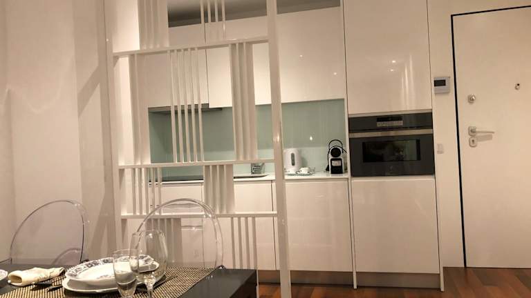 Das Apartment verfügt über ein Schlafzimmer, ein Wohnzimmer und eine voll ausgestattete Küche. Es gibt auch einen Balkon, von dem aus Sie einen atemberaubenden Blick auf die Stadt genießen können. Das Apartment ist geräumig und bietet alle Annehmlichkeiten, die Sie für einen angenehmen Aufenthalt benötigen, einschließlich eines Flachbild-TVs und kostenfreiem WLAN. Handtücher und Bettwäsche werden gestellt.