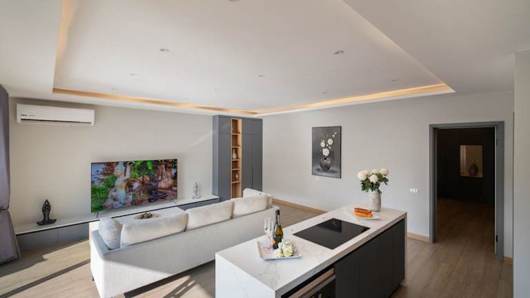 Die Villa ist klimatisiert und umfasst vier Schlafzimmer, ein Wohnzimmer sowie eine voll ausgestattete Küche mit Kühlschrank und Kaffeemaschine. Es stehen vier Badezimmer mit Dusche und Whirlpool zur Verfügung. Handtücher und Bettwäsche werden bereitgestellt. Zudem gibt es einen Zimmerservice und kostenloses WLAN.