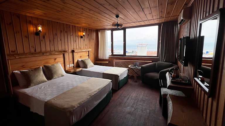 Das Denizci Hotel befindet sich in einer zentralen Lage in Sinop und ist nur wenige Meter vom Meer entfernt. Die Unterkunft ist gut erreichbar und bietet eine gute Anbindung an den öffentlichen Nahverkehr. In der unmittelbaren Umgebung finden Sie verschiedene Restaurants und Geschäfte. Der Strand ist nur eine kurze Fahrt entfernt und Busse stehen zur Verfügung. Der Flughafen Sinop ist ebenfalls leicht zu erreichen und liegt nur 6,2 km entfernt.