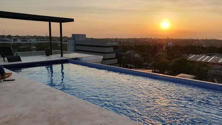 Das Departamento 1 habitación zona exclusiva in Asunción bietet Ihnen einen angenehmen Aufenthalt mit vielen Annehmlichkeiten. Entspannen Sie am Außenpool, trainieren Sie im Fitnesscenter und genießen Sie den Blick auf die Stadt. Das klimatisierte Apartment verfügt über eine voll ausgestattete Küche, ein komfortables Schlafzimmer und ein modernes Badezimmer. Das freundliche Personal an der 24-Stunden-Rezeption steht Ihnen in verschiedenen Sprachen zur Verfügung. Die Unterkunft bietet auch eine Terrasse und einen Kinderspielplatz. In der Nähe befinden sich das Stadion General Pablo Rojas und das Asuncion Casino. Der internationale Flughafen Silvio Pettirossi ist nur wenige Kilometer entfernt.