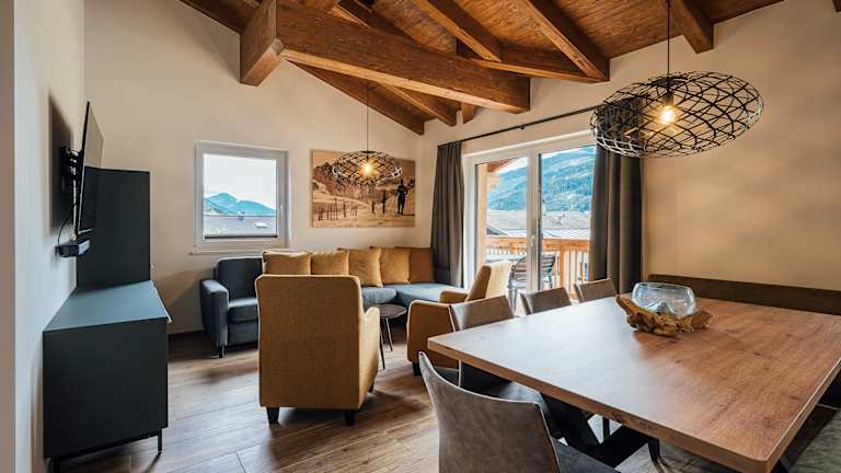 Unsere Apartments verbinden zeitloses Design mit alpiner Natürlichkeit. Hochwertige Materialien, harmonische Farben und intelligente Raumkonzepte schaffen eine Atmosphäre der Ruhe und Klarheit. Ob romantisch zu zweit, entspannt mit der Familie oder aktiv mit Freunden – hier erleben Sie Privatsphäre und Verbundenheit zugleich. Ideal für alle, die bewusst reisen und Aktivität mit Entspannung vereinen möchten. Highlights Neu errichtetes Apartmenthaus im stilvollen, alpinen Design Private Sauna in jedem Apartment Beheizter Outdoorpool Bus/Zug direkt zur Skipiste Restaurant Ruhige Lage am Bach – zentral im Ort Ökologisch und nachhaltig gebaut Tiefgarage & Außenstellplätze mit E-Ladestationen