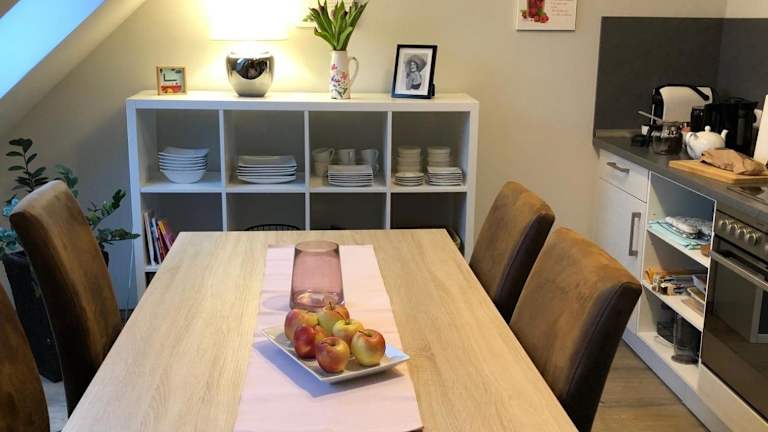 Die Ferienwohnung umfasst 2 Schlafzimmer, ein Wohnzimmer und eine gut ausgestattete Küche, die über Kühlschrank und Geschirrspüler verfügt. Zur Ausstattung gehören zudem ein TV, ein DVD-Player und ein CD-Player. Des Weiteren steht eine Terrasse zur Verfügung.