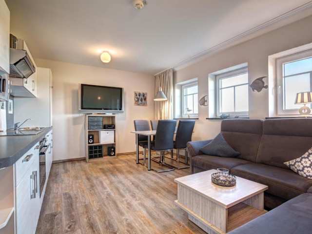 Die Ferienwohnung verfügt über zwei Schlafzimmer. Zur Ausstattung gehören ein TV, eine Küche mit Kühlschrank sowie Geschirrspüler. Weitere Details zur Raumgestaltung sind nicht vorhanden.