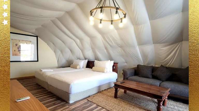 Die Unterkünfte im Desert Breeze Cocoon sind luxuriöse Zelte, die mit modernen Annehmlichkeiten wie kostenlosem WLAN und Klimaanlage ausgestattet sind. Jedes Zelt verfügt über einen Flachbild-TV und Handtücher sowie Bettwäsche werden gestellt. Hier können Sie sich in einem einzigartigen Ambiente entspannen und den Komfort eines Hotels genießen.