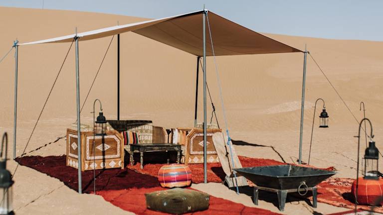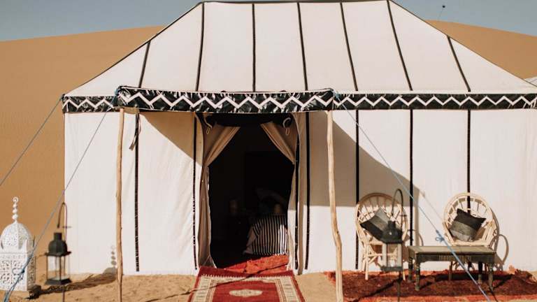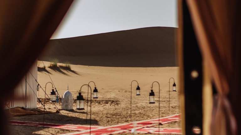 Desert Luxury Camp Erg Chigaga bietet eine einzigartige Übernachtungsmöglichkeit in der Wüste, kombiniert mit luxuriösem Komfort und naturnaher Atmosphäre.