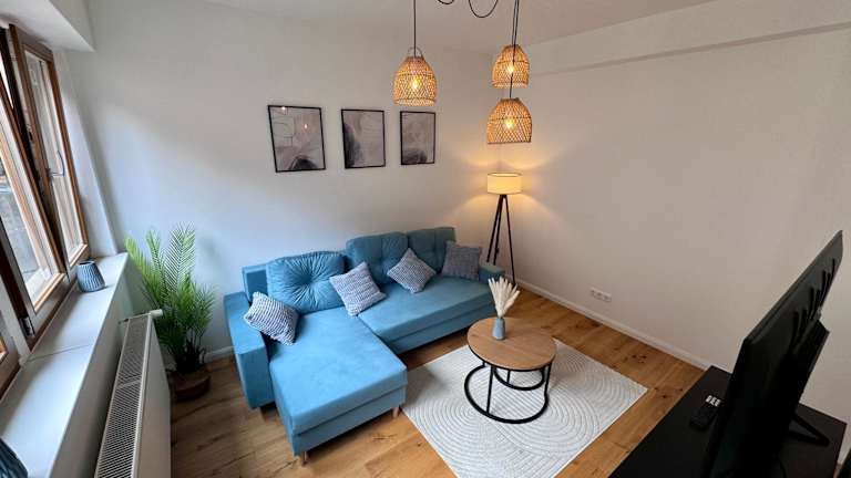 Die Ferienwohnung umfasst ein Schlafzimmer sowie ein Wohnzimmer und ist mit Klimaanlage ausgestattet. Eine voll ausgestattete Küche mit Kühlschrank und Kaffeemaschine ist ebenfalls vorhanden. Zur Ausstattung gehört ein Badezimmer mit Dusche und Haartrockner. Handtücher und Bettwäsche werden bereitgestellt.