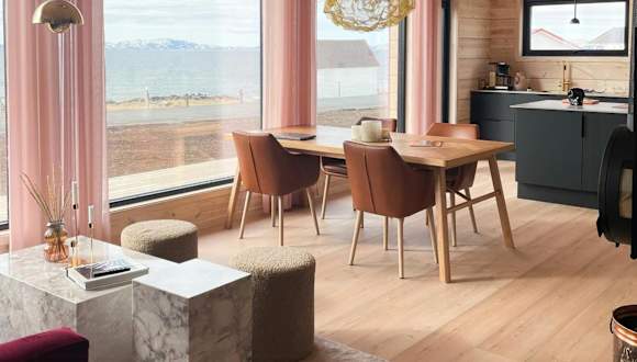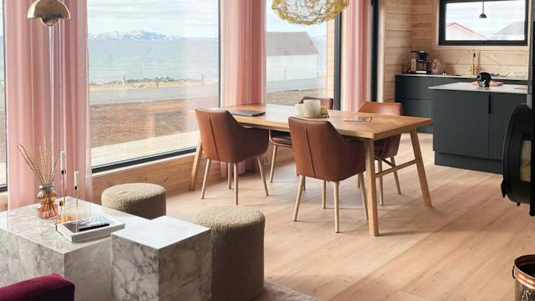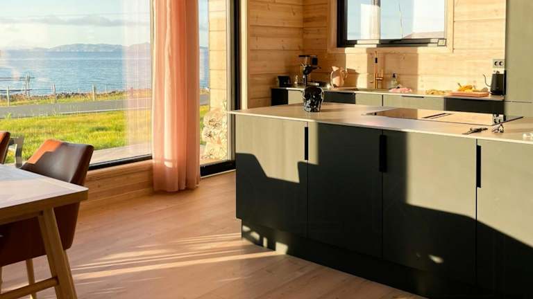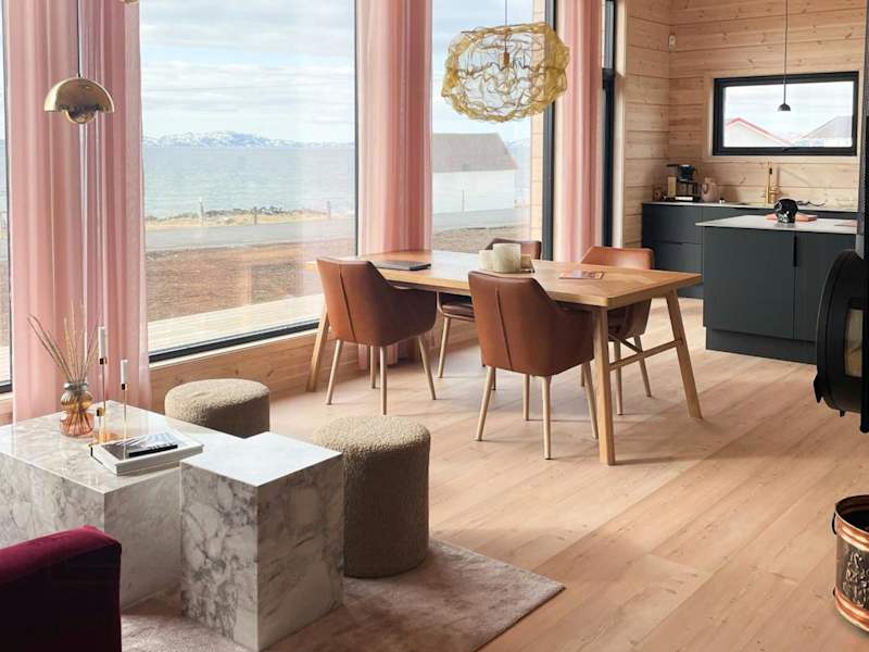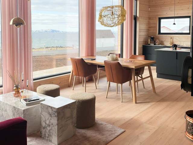 Die Design Cabin By The Sea With Northern Lights ist ein Ferienhaus, das eine moderne und komfortable Unterkunft bietet. Es verfügt über drei Schlafzimmer, ein Badezimmer und eine voll ausgestattete Küche. Der Blick auf das Meer sowie die Sauna sind besondere Merkmale dieser Unterkunft.