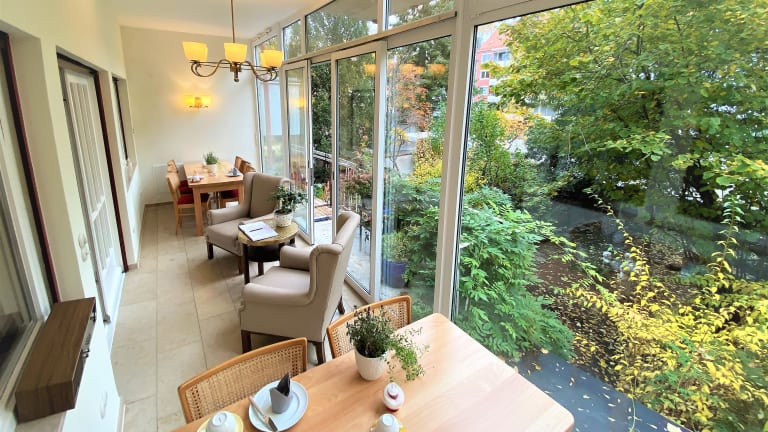 Das Hotel verfügt über eine Terrasse, auf der Sie bei schönem Wetter entspannen und die Atmosphäre genießen können. Der angrenzende Stadtpark bietet zudem die Möglichkeit für ruhige Spaziergänge und erholsame Momente in der Natur.