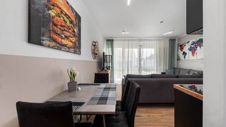 Die Unterkunft Design Luxus ist ein Neubau, der eine vollständige Ausstattung bietet. Gästen stehen kostenfreies WLAN und ein kostenloser Privatparkplatz zur Verfügung. Ein Garten sowie eine Terrasse sind ebenfalls vorhanden und bieten einen angenehmen Ausblick und Rückzugsorte.