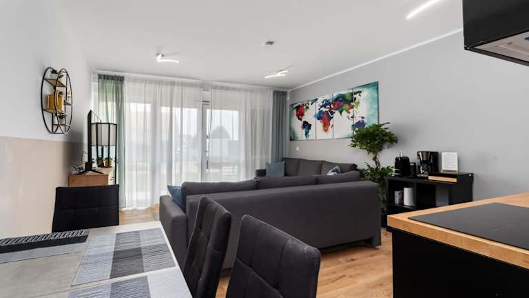 Die Zimmer sind mit einem Sitzbereich, einem Flachbild-TV und einer voll ausgestatteten Küche ausgestattet, die über einen Kühlschrank, Geschirrspüler, Ofen, Mikrowelle, Minibar, Kaffeemaschine und Wasserkocher verfügt. Zudem steht ein eigenes Badezimmer mit einer Dusche und kostenlosen Pflegeprodukten zur Verfügung.