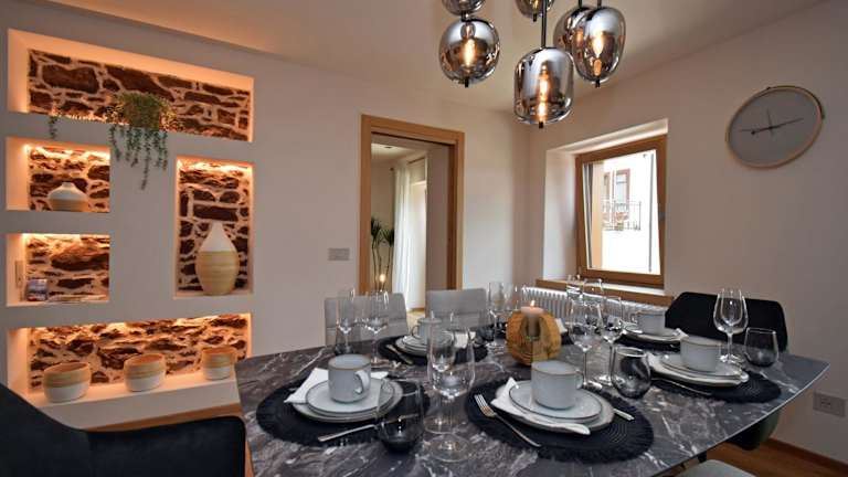 Die Ferienwohnung umfasst zwei Schlafzimmer, ein Wohnzimmer, einen Satelliten Flachbild-TV, eine gut ausgestattete Küche sowie zwei Badezimmer, ausgestattet mit einem Bidet und einer Dusche. Handtücher und Bettwäsche werden zur Verfügung gestellt.