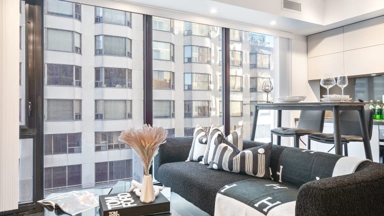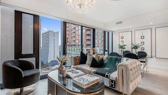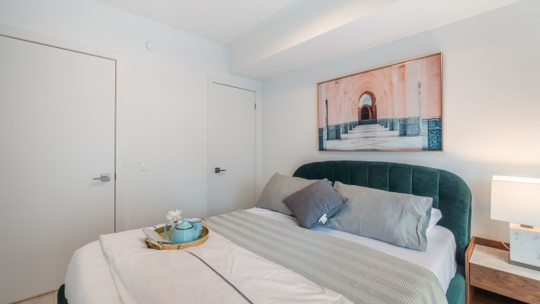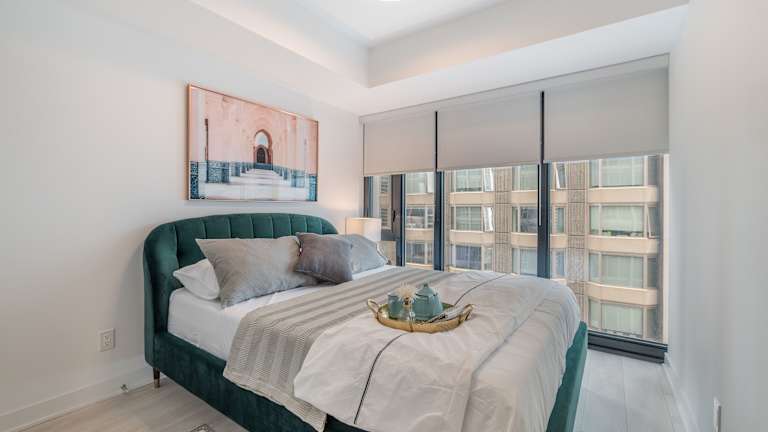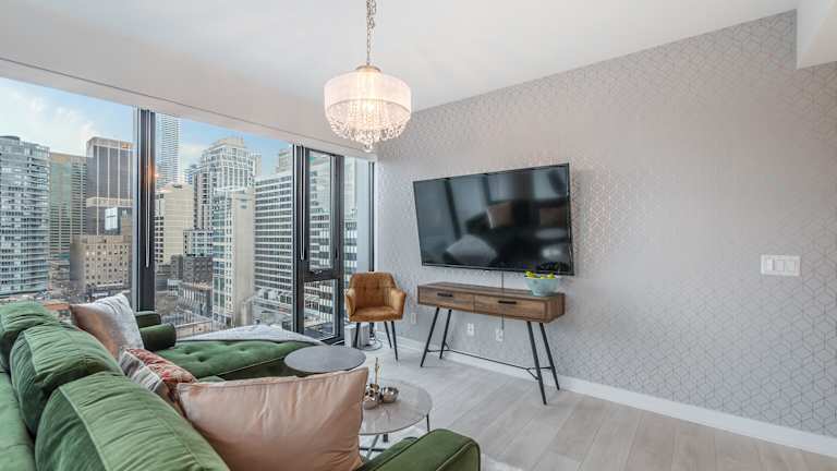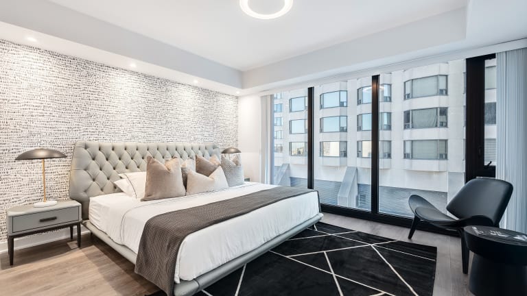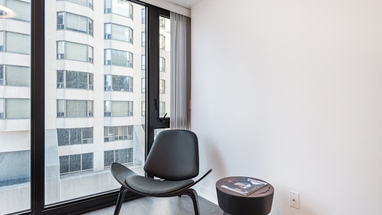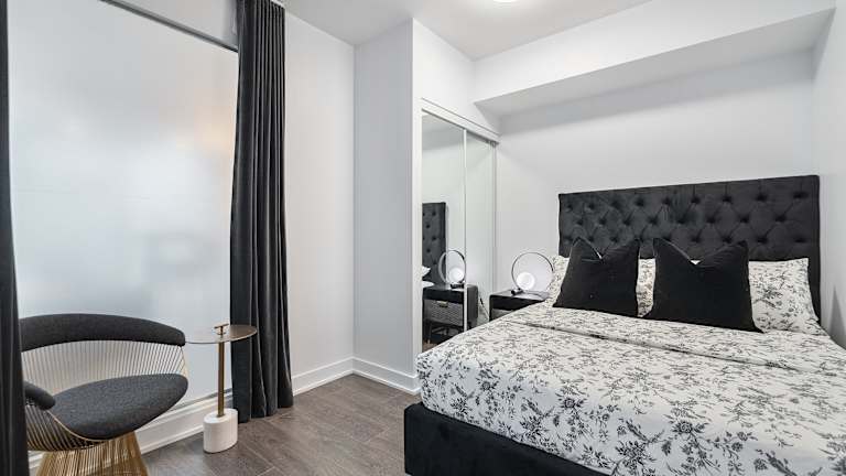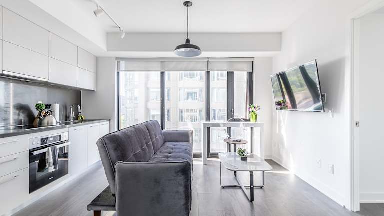 Die Designer One Bedroom Suite - Yorkville bietet eine moderne Ferienwohnung mit kostenlosem WLAN, Klimaanlage und verschiedenen Haushaltsannehmlichkeiten. Ein Privatparkplatz steht vor Ort zur Verfügung.