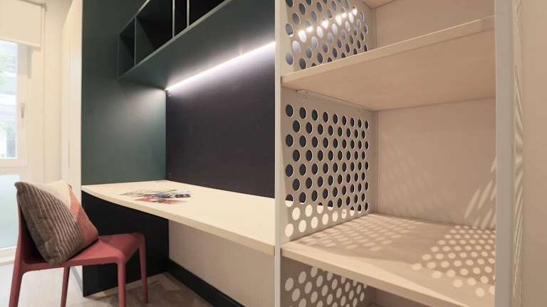 In der Unterkunft sind die Zimmer mit einem Schreibtisch sowie einem eigenen Badezimmer ausgestattet. Die Gästezimmer sind mit Bettwäsche versehen. Die Doppelzimmer in der gemeinschaftlich genutzten Wohnung sind mit einem kleinen Doppelbett (120 cm) ausgestattet. Jedes Zimmer ist für Nichtraucher vorgesehen, und bei Verstoß gegen diese Regel wird eine Gebühr von 150 EUR erhoben.