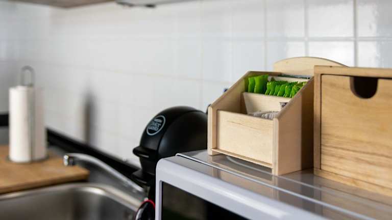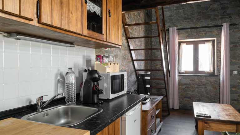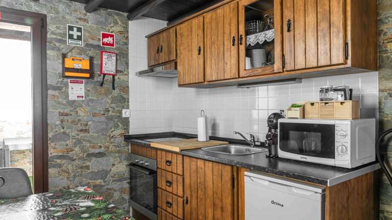Die Unterkunft bietet eine vollständig ausgestattete Küche mit einem Kühlschrank, einem Ofen und einer Mikrowelle, die eine Selbstversorgung ermöglicht.