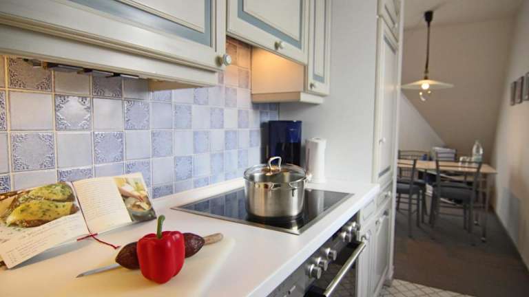 Die Ferienwohnung umfasst zwei Schlafzimmer und ist mit einem TV sowie einer voll ausgestatteten Küche ausgestattet. Zu den Küchenannehmlichkeiten zählen ein Kühlschrank, ein Geschirrspüler, eine Waschmaschine, ein Ofen und eine Herdplatte. Handtücher und Bettwäsche werden bereitgestellt.