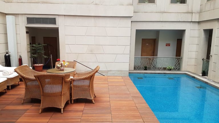 Das Dia Park Premier in Gurgaon bietet seinen Gästen eine komfortable Unterkunft mit vielen Annehmlichkeiten. Das Hotel verfügt über ein Fitnesscenter, kostenfreie Privatparkplätze, einen Garten und eine Gemeinschaftslounge. Die Lage des Hotels ermöglicht es den Gästen, die MG Road und andere Sehenswürdigkeiten in der Nähe zu erkunden. Das Hotel bietet auch ein Restaurant und eine Bar, in denen die Gäste speisen und entspannen können. Mit einer 24-Stunden-Rezeption, Flughafentransfers und kostenlosem WLAN in allen Bereichen ist das Dia Park Premier bestrebt, den Gästen einen angenehmen Aufenthalt zu bieten. Die Zimmer sind gut ausgestattet und verfügen über Annehmlichkeiten wie einen Kühlschrank, eine Minibar und eine Kaffeemaschine. Ein kontinentales Frühstück wird täglich serviert, um den Tag gut zu beginnen. Das Dia Park Premier ist eine gute Wahl für Reisende, die nach einer komfortablen Unterkunft in Gurgaon suchen.