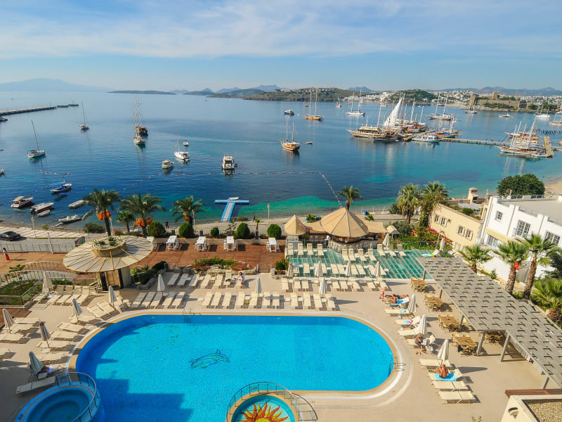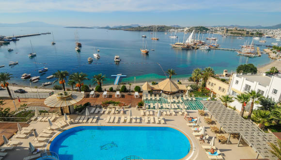 Das Hotel besitzt eine Dachterrasse mit Aussicht auf die Bucht von Bodrum und bietet Badevergnügen in drei verschiedenen Pools sowie Zugang zu einem Strand. Entspannung finden die Gäste im Spabereich. Zu den Einrichtungen zählen eine Rezeption, Gartenanlage, Liegen am Pool und ein Wäscheservice. Die Hotelöffnungszeiten sind von 14:00 Uhr (Check-in) bis 12:00 Uhr (Check-out).