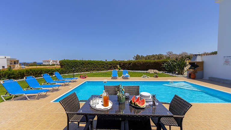 Entspannen Sie am saisonalen Außenpool und genießen Sie die Sonne auf der Sonnenterrasse der Diana Villa. Der wunderschön angelegte Garten lädt zum Verweilen und Entspannen ein. In der Umgebung gibt es zahlreiche Freizeitaktivitäten, die Sie erkunden können, wie zum Beispiel Wassersport, Wandern oder Radfahren. Erkunden Sie die Umgebung und entdecken Sie die natürliche Schönheit von Pomos.