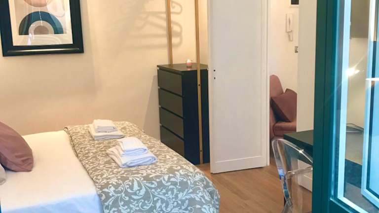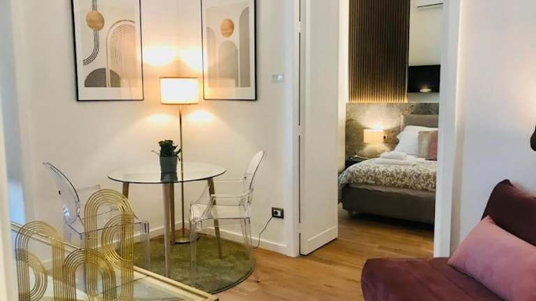 Die Ferienwohnung verfügt über ein Schlafzimmer und ein Wohnzimmer. Sie ist mit einer voll ausgestatteten Küche, die unter anderem einen Kühlschrank und eine Kaffeemaschine beinhaltet, sowie einem Badezimmer mit Dusche und kostenlosen Pflegeprodukten ausgestattet. Handtücher und Bettwäsche sind ebenfalls vorhanden.