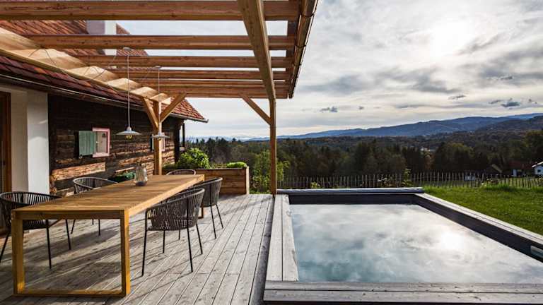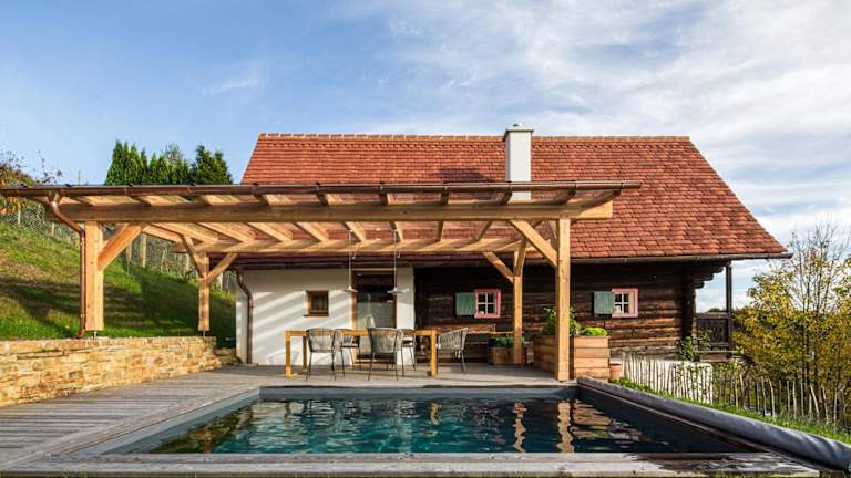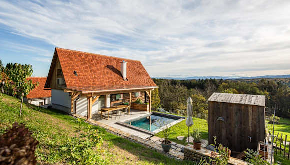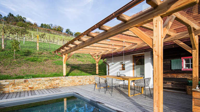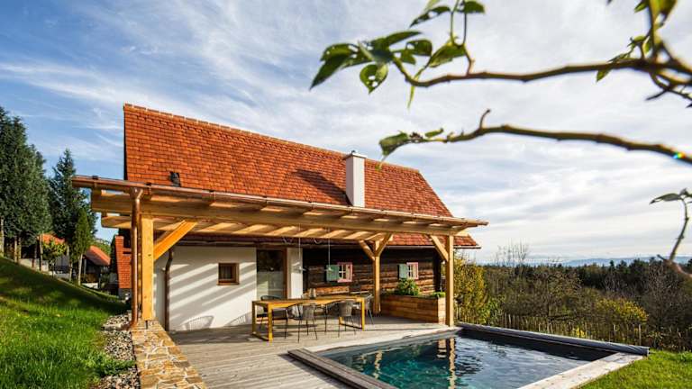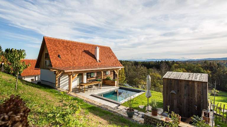 DieKELLERSTÖCKL - Das Weinstöckl S24 mit Pool bietet Übernachtungsmöglichkeiten in einem komfortablen Ferienhaus mit einem saisonalen Außenpool, einem Garten und einer Terrasse. Die Unterkunft verfügt über kostenfreies WLAN und bietet einen herrlichen Bergblick.