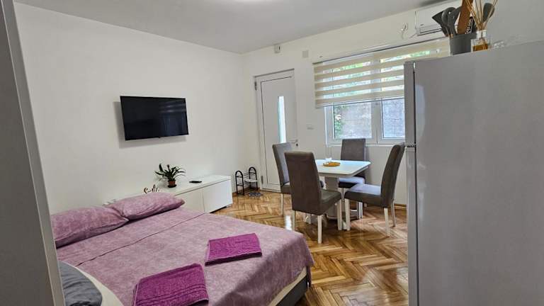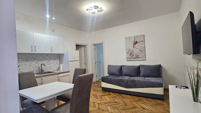 Das DIKA Apartment befindet sich in einer großartigen Lage, nur etwa 27 km vom malerischen Skutarisee entfernt. Der Hafen von Bar ist ebenfalls in der Nähe, nur 8,5 km entfernt. Von hier aus können Sie die beeindruckende Natur und die Sehenswürdigkeiten der Umgebung erkunden. Der nächstgelegene Flughafen ist der Flughafen Podgorica, der etwa 46 km entfernt liegt.
